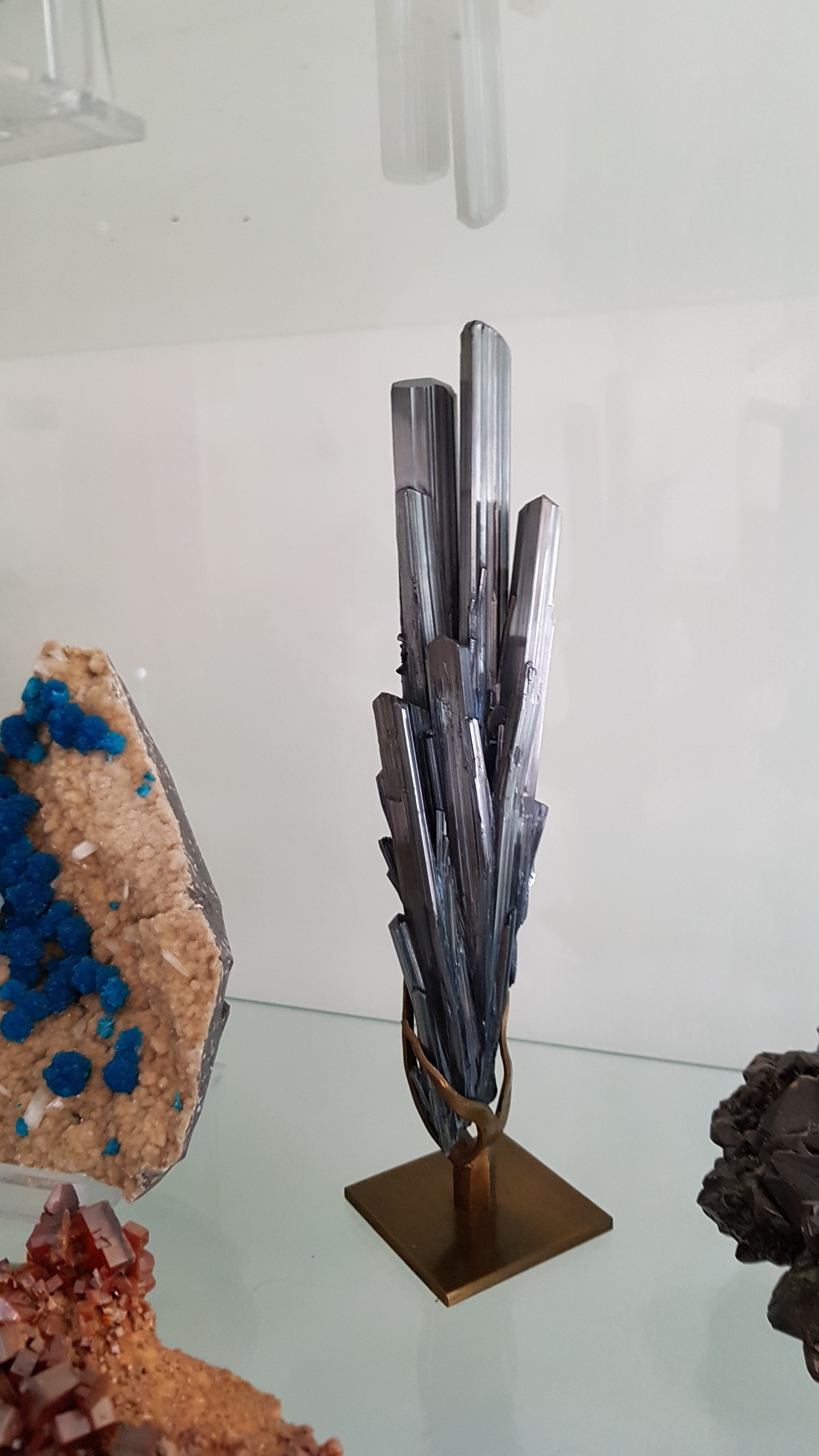 C'est une pièce ancienne (enfin ancienne pour du Tsumeb, je m'entend), sur une matrice de tennantite massive, constellée au dos de petits cristaux de pyrite (rares à Tsumeb, qui était malgré sa richesse plutôt déficiente en fer...).