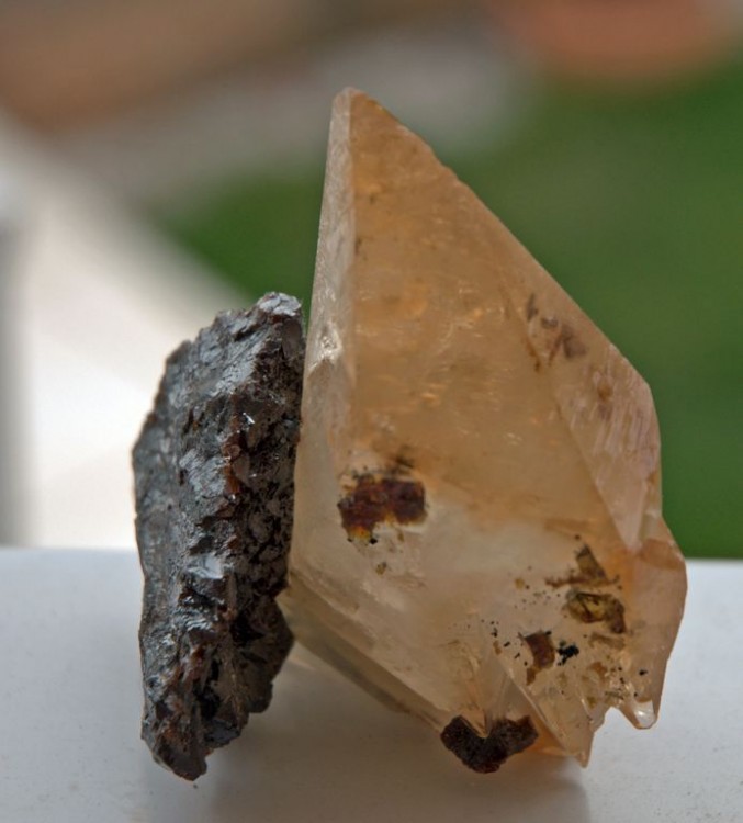 Et puis une deuxième calcite, toujours Elmwood, mais maclée et sur sphalérite, avec inclusions de sphalérite, 8 * 5 * 3 cm