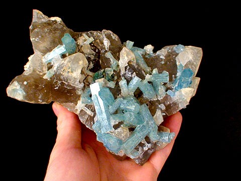 ;) - Et la baguatelle d'une trentaine de cristaux de beryls, en majorité aigue-marine (à coeur de Goshénite) plus quelques Goshénite.