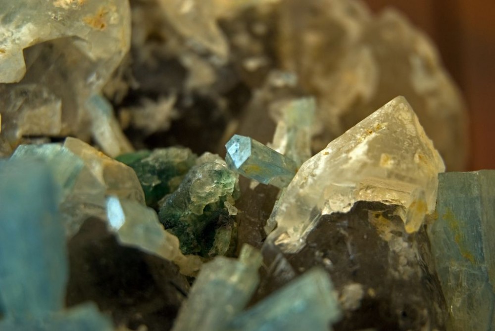 Je m'échine a faire de bonnes photos pour partager avec vous la paragenèse et l'évolution de cet échantillon, mais c'est difficile. Très pédagogique, mais délicat à illustrer sans que les photos paraissent traffiquées, les beryls sont parfois quasis fluorescents.