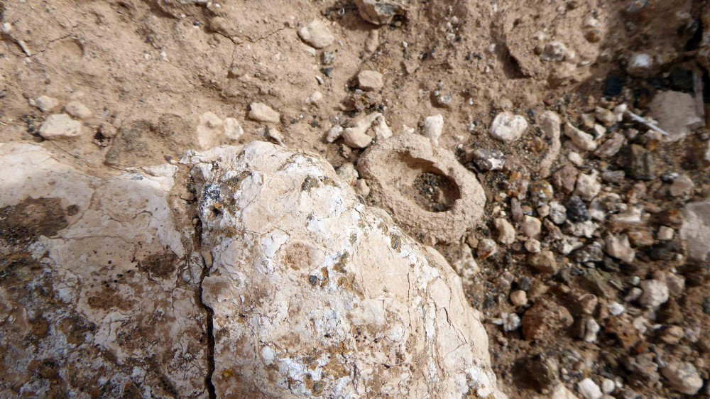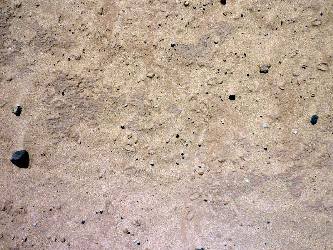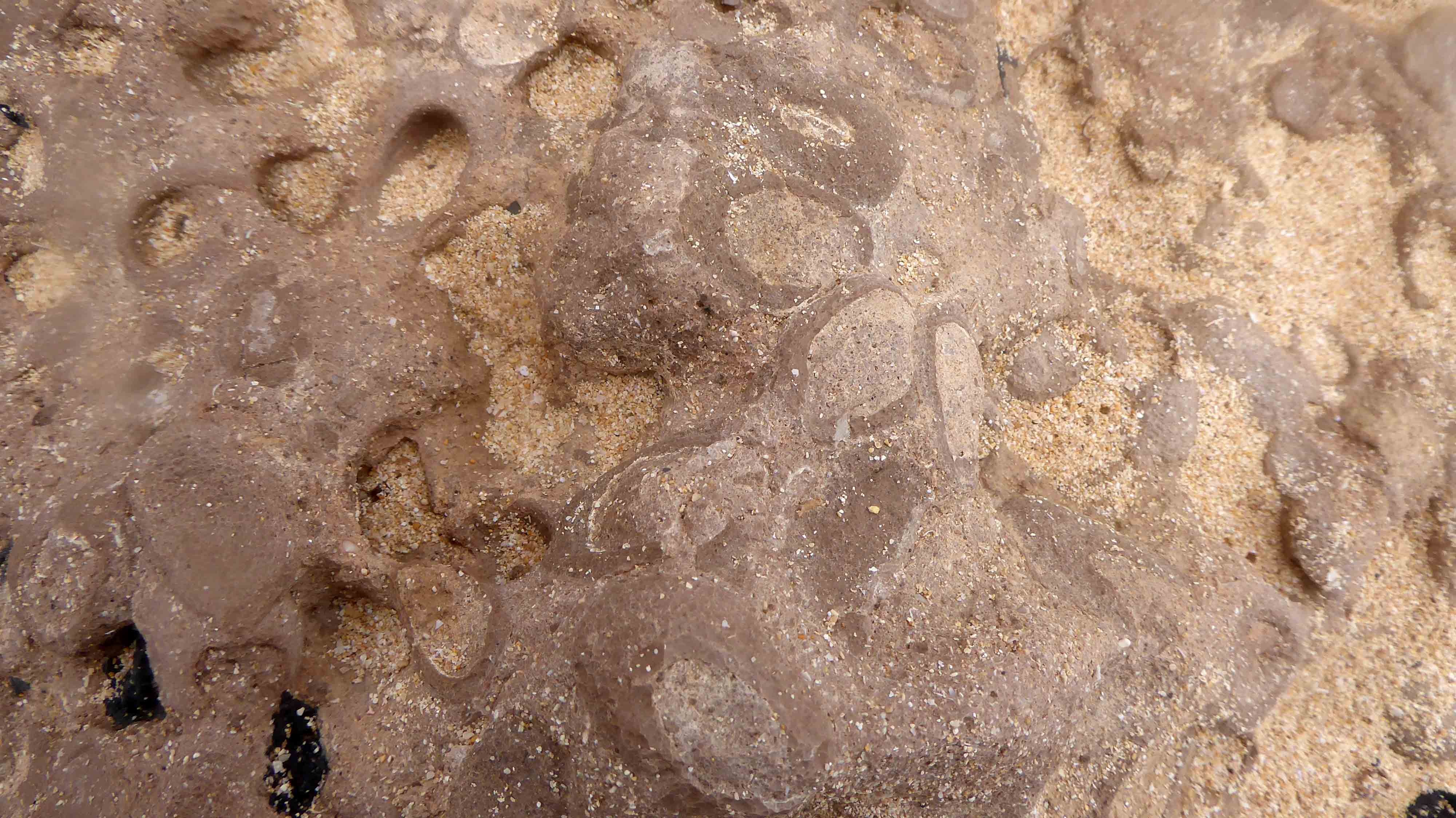 En des endroits le vent a dégagé le sable, découvrant des sols plus anciens dans lesquels on trouve en grande quantité ces "objets" photographiés.