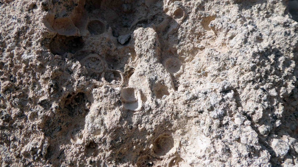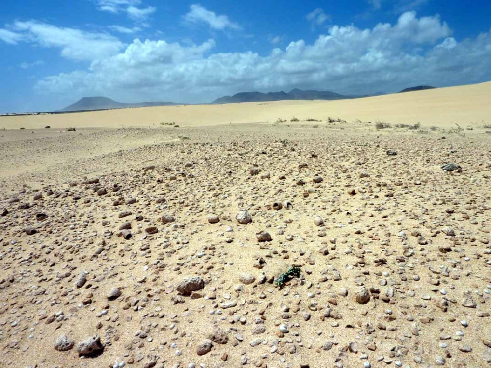 et sur l'île de la Graciosa, dans des sables bourrés de coquilles de gastéropodes (chuchangas) fossiles elles aussi. (Playa del Ambar).