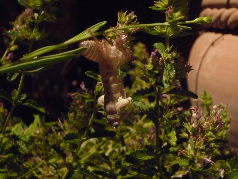 En train de sortir de sa chrysalide,ailes non déployées.Malgré la bonne volonté de la bestiole pas réussi mes photos de nuit.