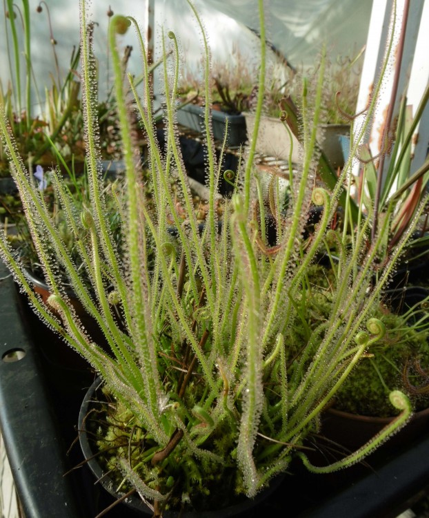 Comme chaque année, je ne résiste pas au plaisir de vous montrer le début de floraison des Sarracenia (plantes carnivores américaines) et Darlingtonia de Californie (fleur ressemblant aux fritillaires); pour Drosera filiformis, il faudra encore patiente pour les fleurs...