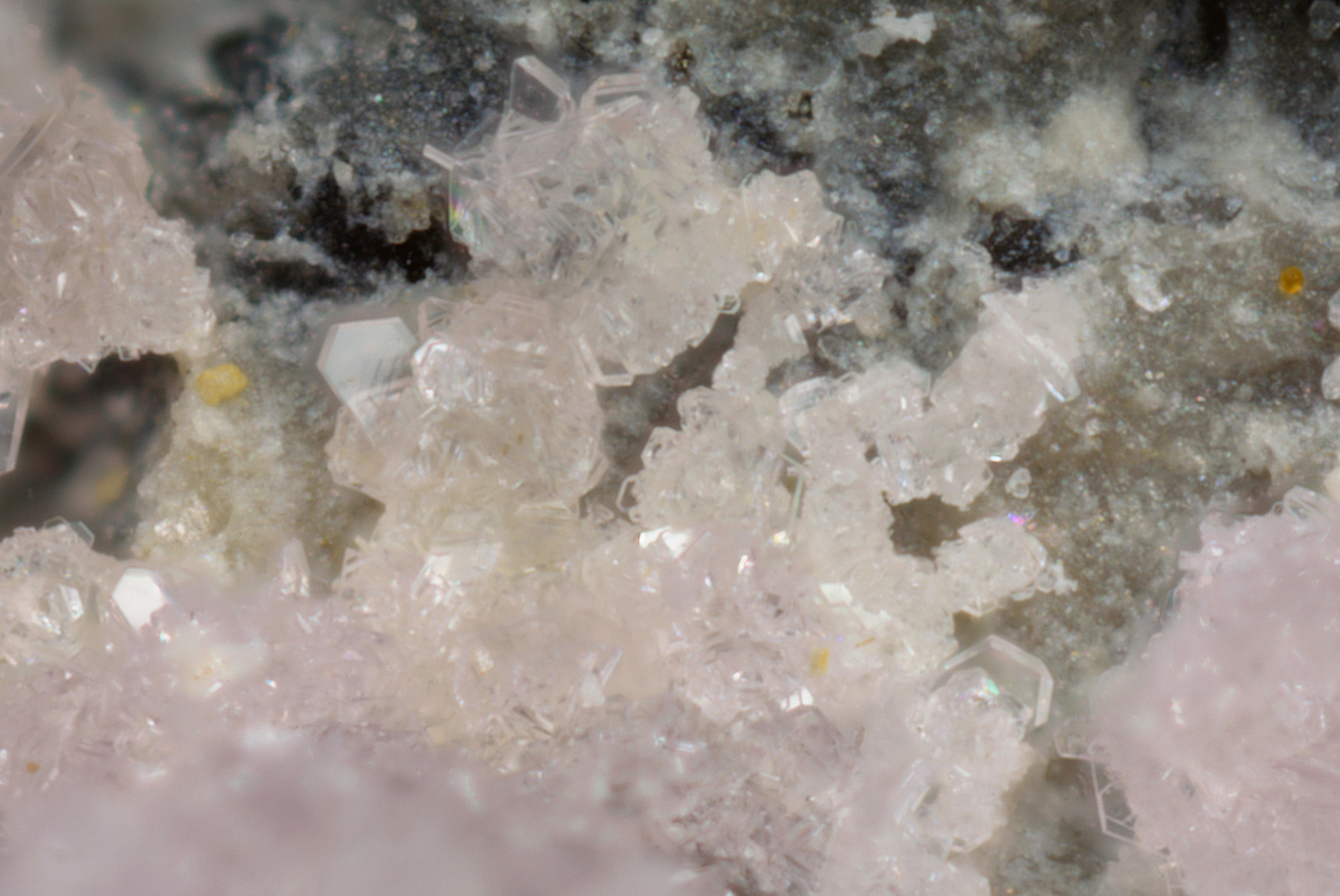 C'est vrai que le MEB est une super machine. Celui auquel j'avais accès était un gros modèle avec sondes EDS, EBSD, cathodoluminescence, et une chambre XXL.  (un JEOL JSM-5910 LV avec sondes Bruker). Il vient d'être remplacé par un équivalent tout neuf, je n'ai pas encore eu l'occasion de mettre les mains dessus mais bientôt j'espère. En plus j'ai la possibilité de faire faire des diffractions RX, à l'université de Liège et au CNRS à Clermont-Ferrand, c'est souvent indispensable (comme pour les namuwite et lahnsteinite qui sont dimorphes et donc parfaitement indifférentiables en EDS).