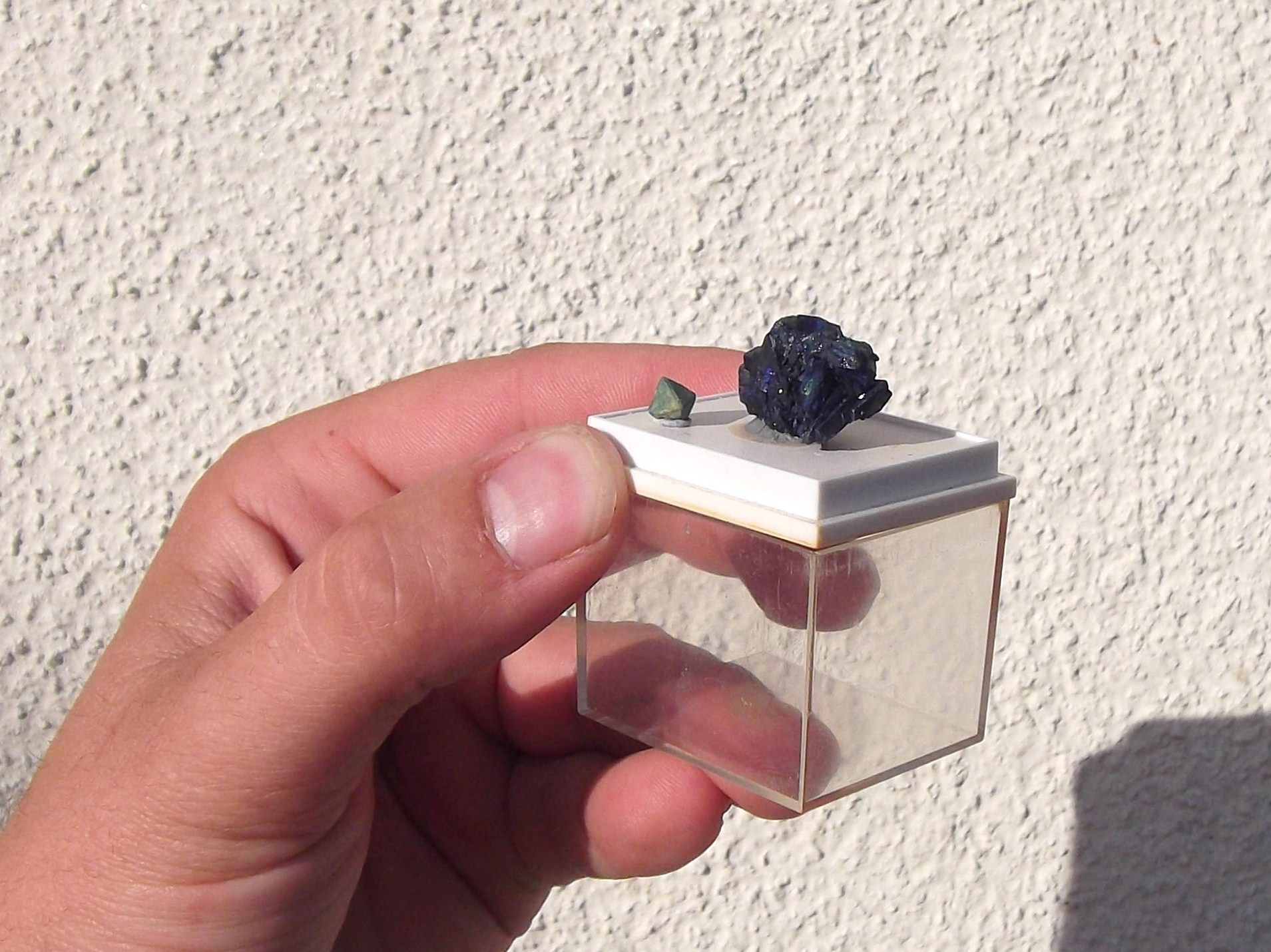 Je ne l'ai plus (donné à un copain de mon fils), mais j'ai vu passer une belle petite azurite marocaine à 3 euros chez un copain, je crois qu'il n'y avait pas trop fait attention, mais bon, je n'ai pas eu le coeur de lui négocier le prix.