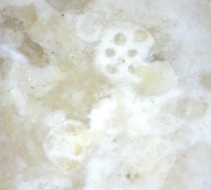 La deuxième photo représente une algue calcaire, Genre Larvaria en coupe, elle peuvent atteindre de plus grande dimension