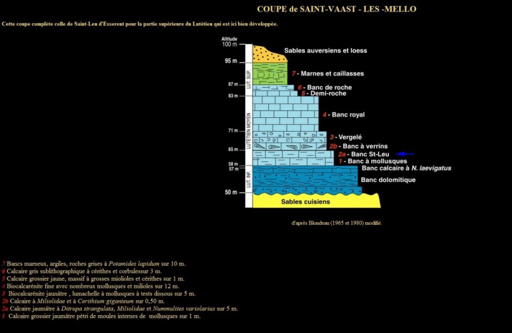 une coupe de de saint vaast les melo ou il mentionne la nummulite variolarius dans le lutétien inf (banc de saint leu)