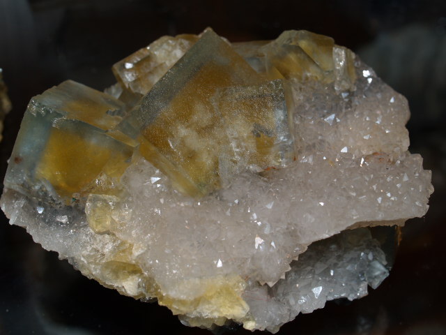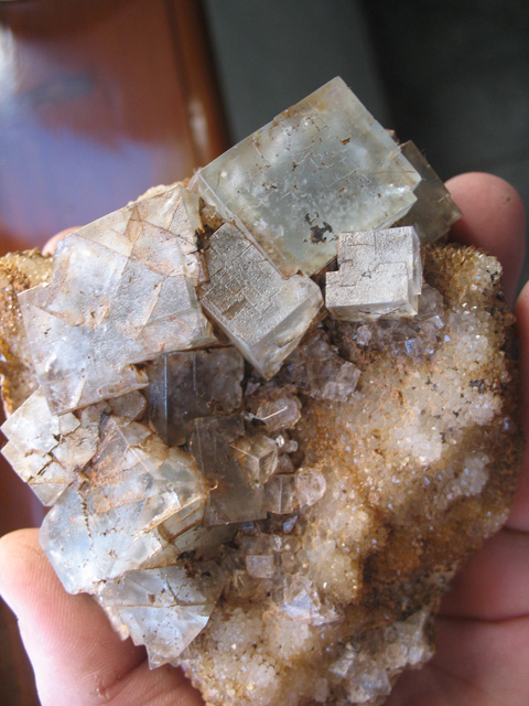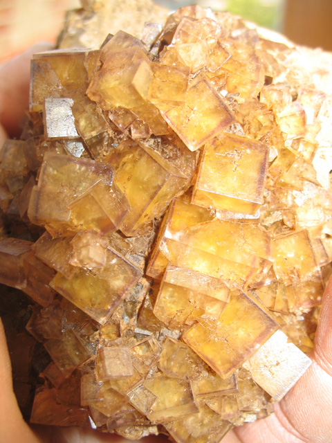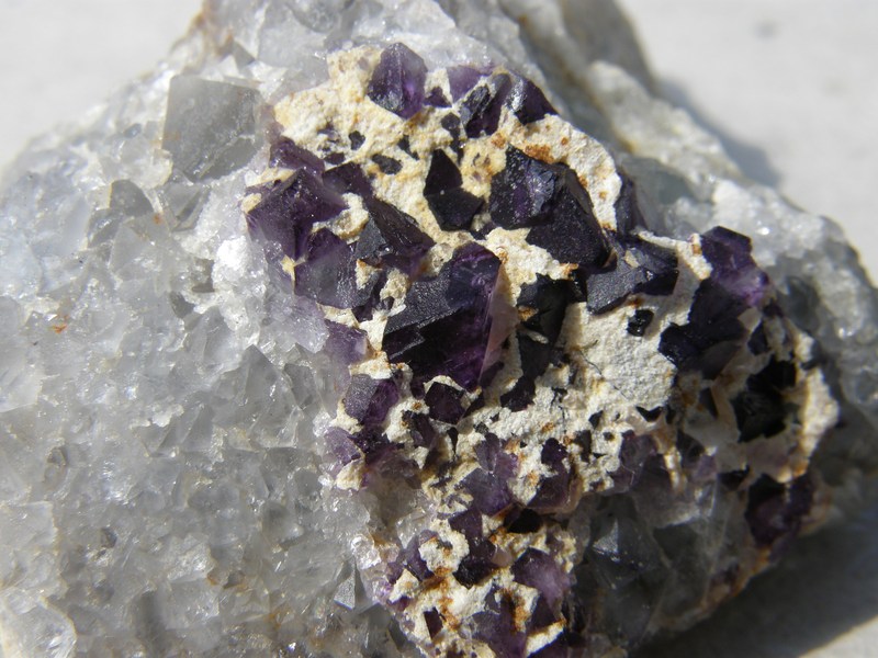Une martinèche, 63, d'il y a 2 ans déjà avec mon ami Matt, octaèdre de fluorite, cristal maximum 1 cm.