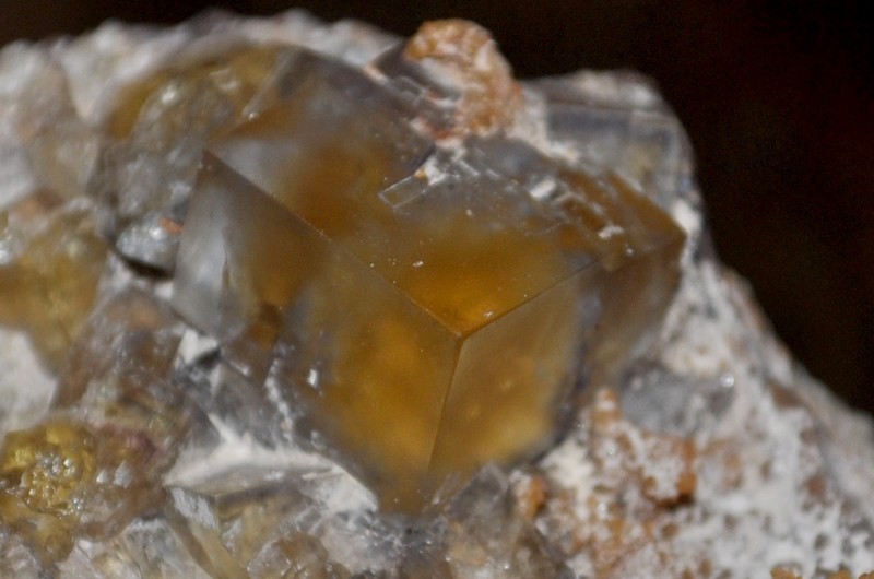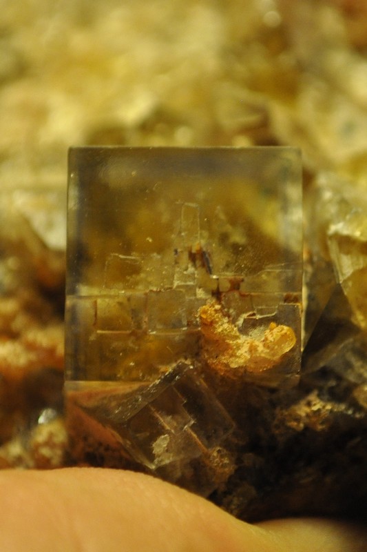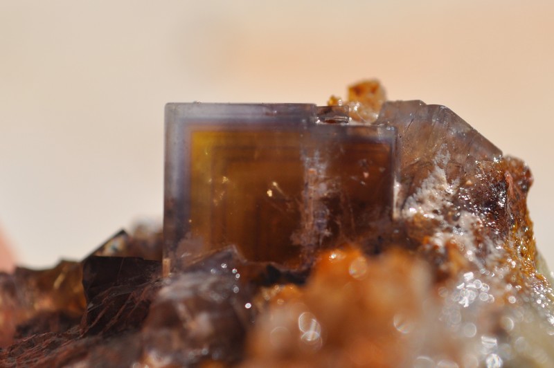 Fluorine en pyramides aztèques légèrement hématoide,la couleur est bonne sur la photo.6 x 4,5 cm.