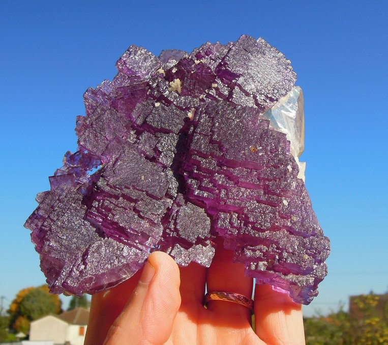 Voici une photo de Fluorine typique provenant de l'un des filons hydrothermaux à quartz et fluorine du secteur nord de Néris les Bains.