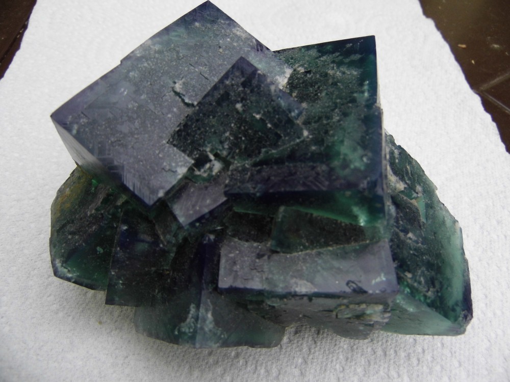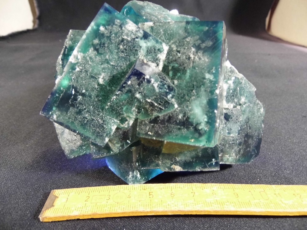 La couche blanche me rappelle celle sur une fluo jaune que j'avais trouvé à Alligny en Morvan. Après un très léger sablage les cubes étaient nickel.