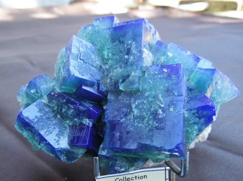 Ce soir j'ai passé le faisceau de la torche UV sur quelques minéraux d'Auvergne et c'est un petit cube centimétrique de fluorine du Beix qui m'a répondu en rayonnant ce bleu azur...