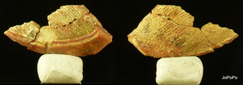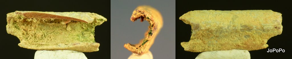 - une belle merde, qui m'a fait penser à un os, creux, avec une forme plutôt anguleuse. Une cassure fraîche laisse apparaître un intérieur orangé, avec un aspect organique, mais pas plus inspiré que ça