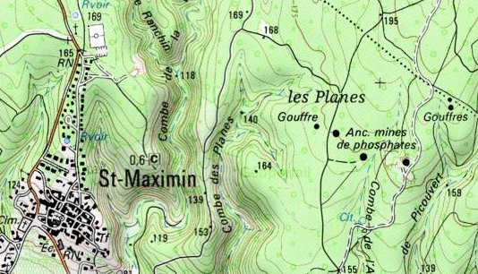 Après quelques recherches, à l'est d'Uzès : le plateau des phosphates ; pas mal d'exploitations anciennes de phosphates sur plusieurs communes : Saint-Maximin, Lirac, Tavel, St Victor, La Capelle. Y a plus qu'a trouver la bonne commune !