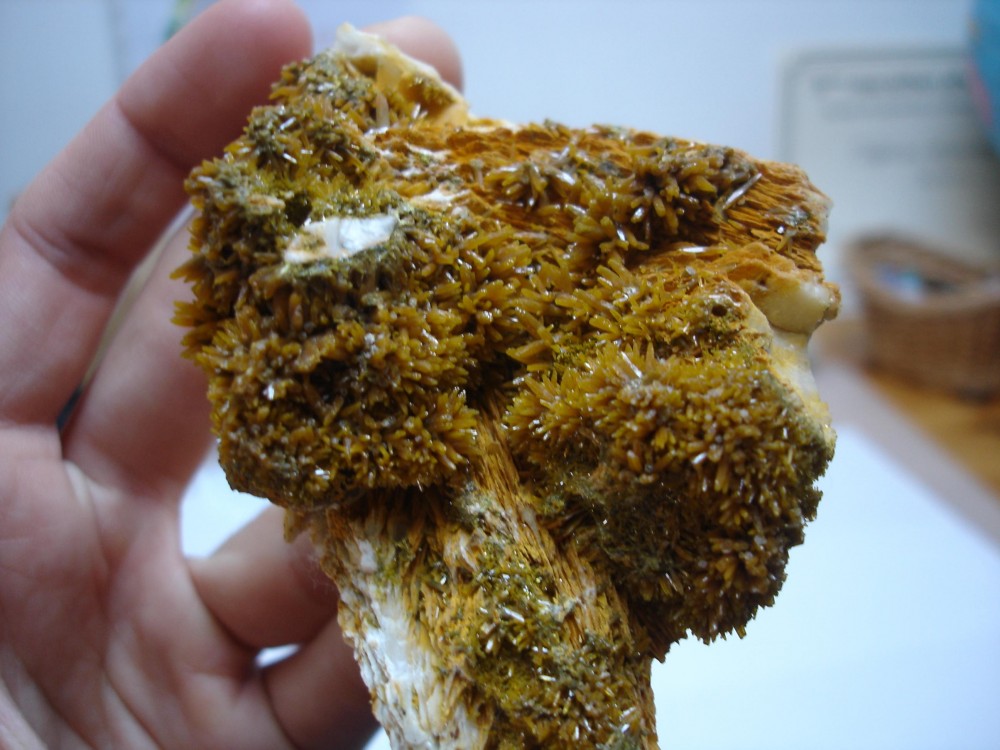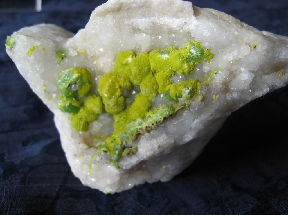je viens de m'apercevoir de la superbe fluorescence (vert-jaune) d'une pyromorphite chinoise montrant des stades de croissance invisible normalement, regardez pour les francaise vous pourriez avoir de bonne surprise !