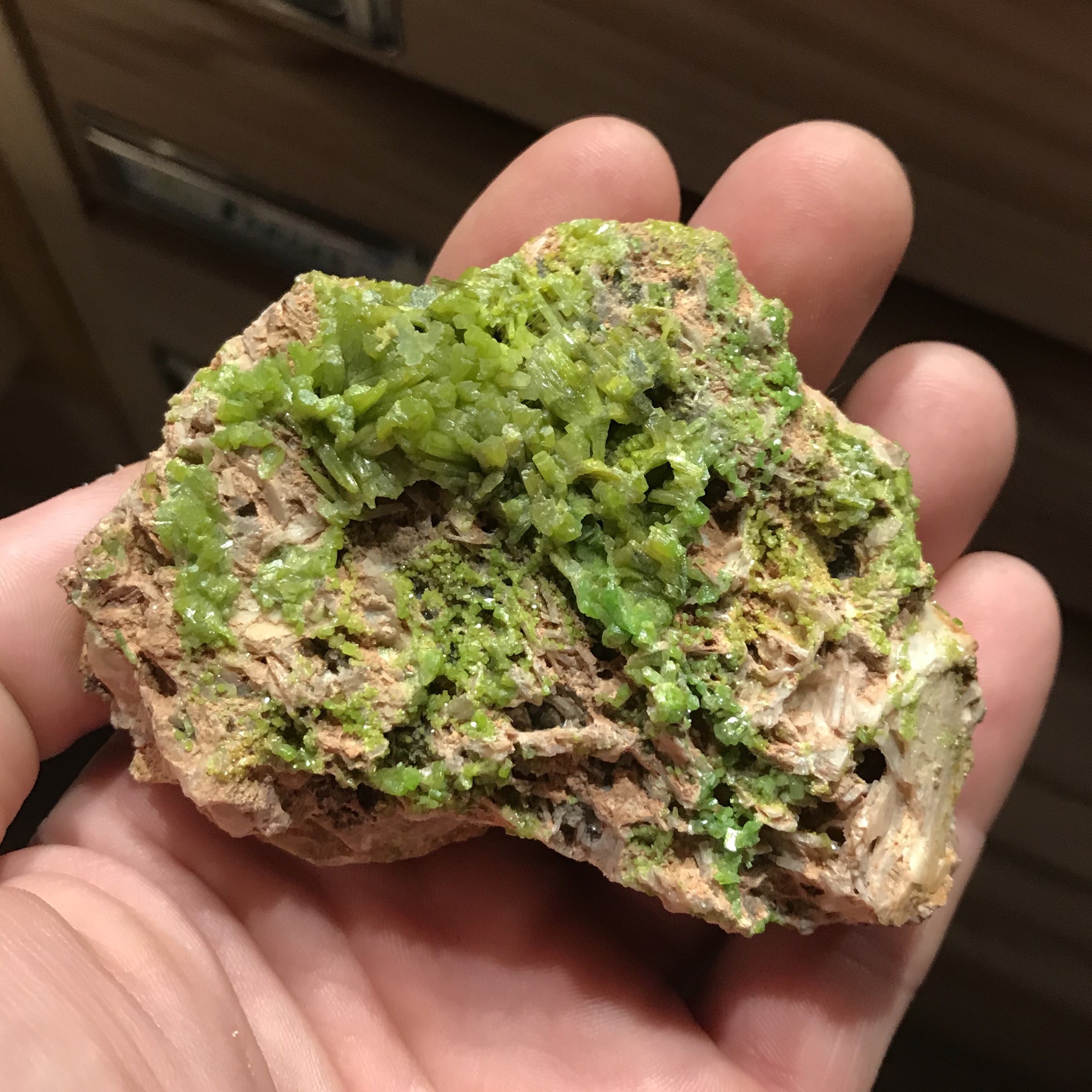 Pyromorphite en cristaux aciculaires, Saint Salvy de la Balme, Tarn