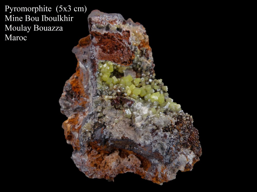 Pyromorphite, mine Bou Iboulkhir, Moulay Bouazza, Maroc.