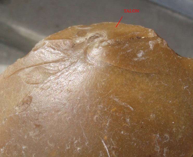 Le talon peut etre brut (comme dans cet exemple), ou porter des facettes d'enlèvements ou d'aménagements préalables à la percussion.