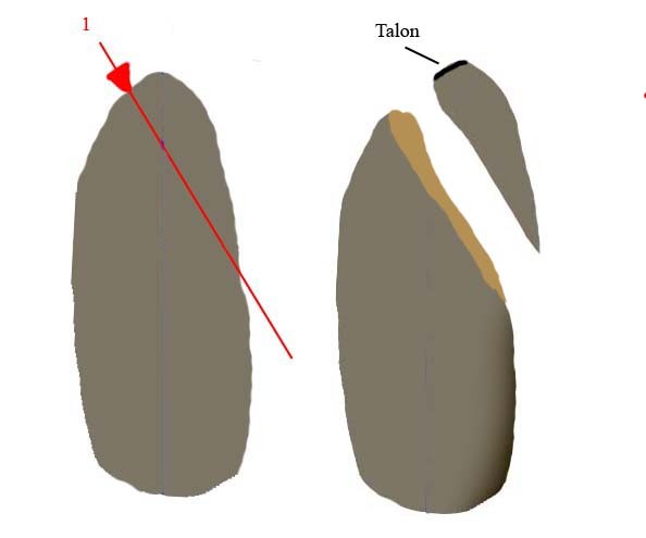 Talon à facettes (on pourrait croire à un aménagement en grattoir mais ca n'est pas le cas):