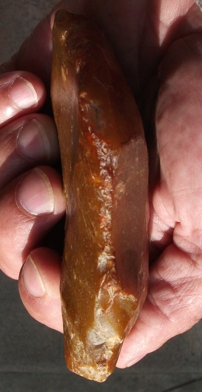 ou comme ce hachereau de Sidi-Abder-Rhaman (Maroc) en quartzite..la première face n'est pas evidente du tout, l'autre un peu plus