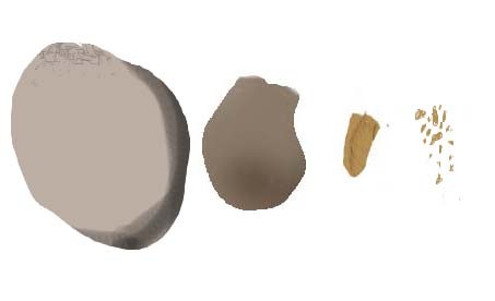 Le choix de la matière s'est orienté très tot vers les roches à cassure conchoidale, permettant un meilleur controle de la fraction avec la possibilité d'obtenir des tranchants fins et coupants.