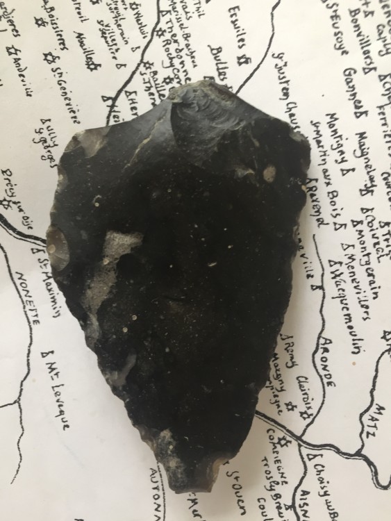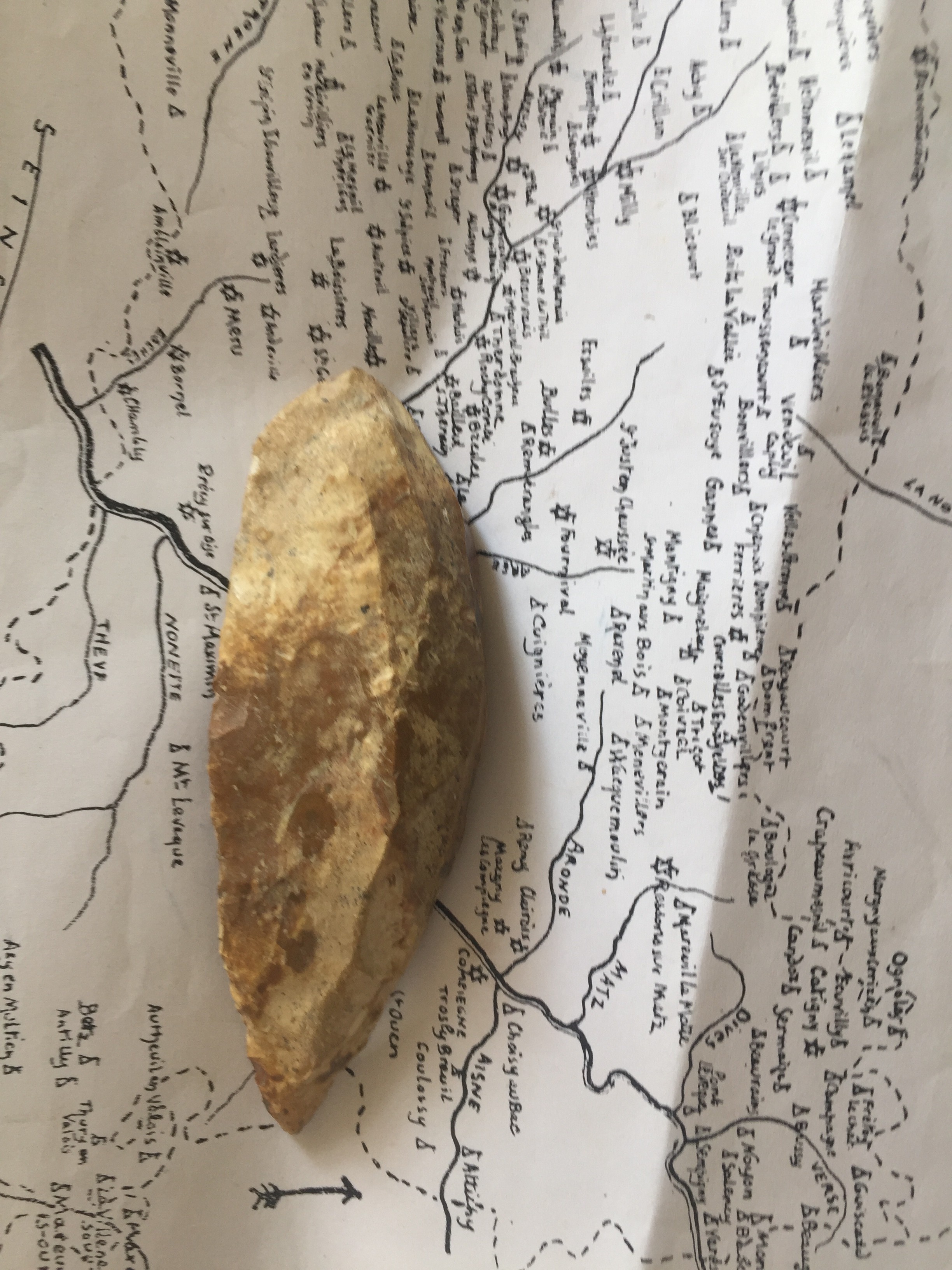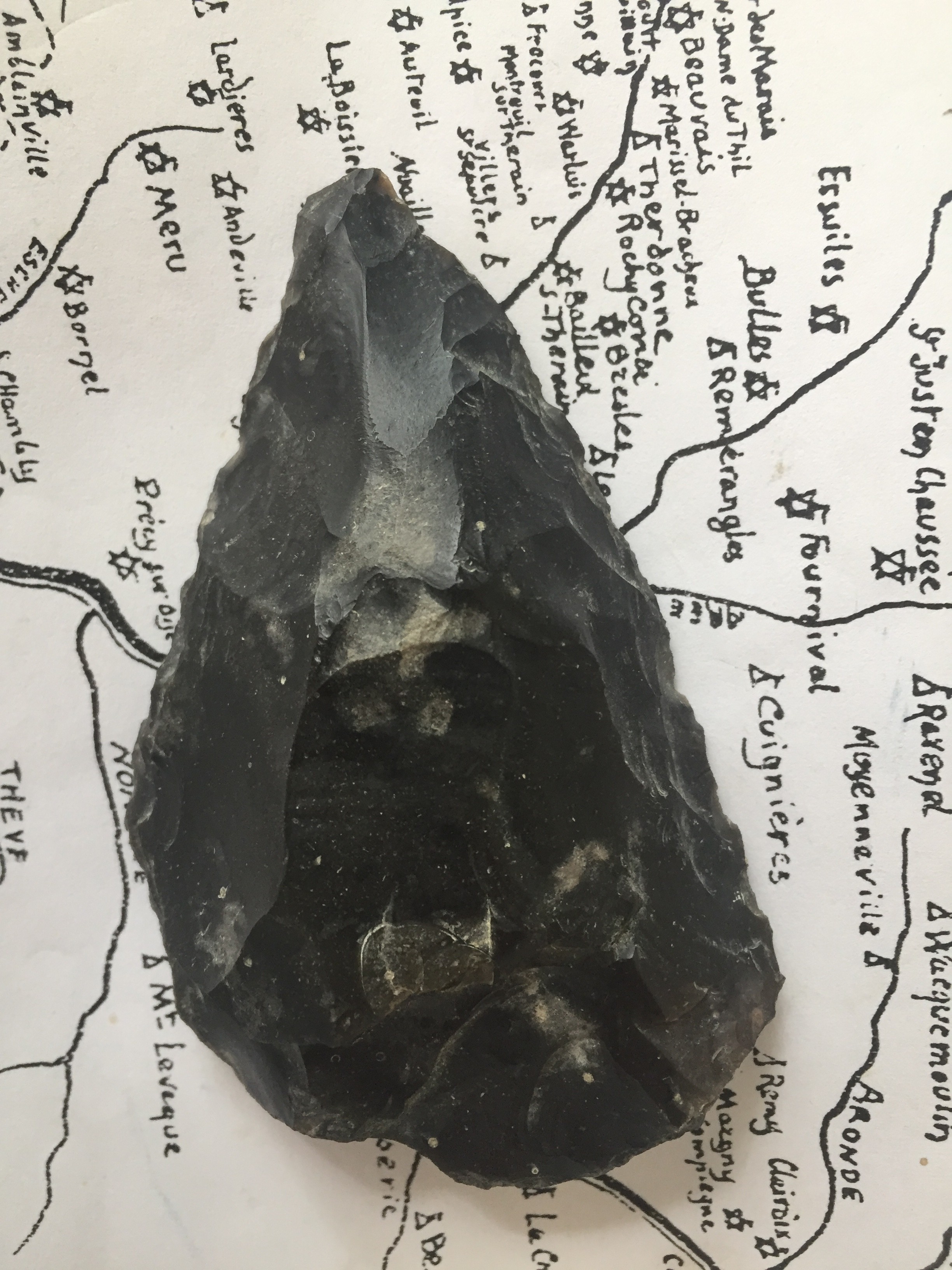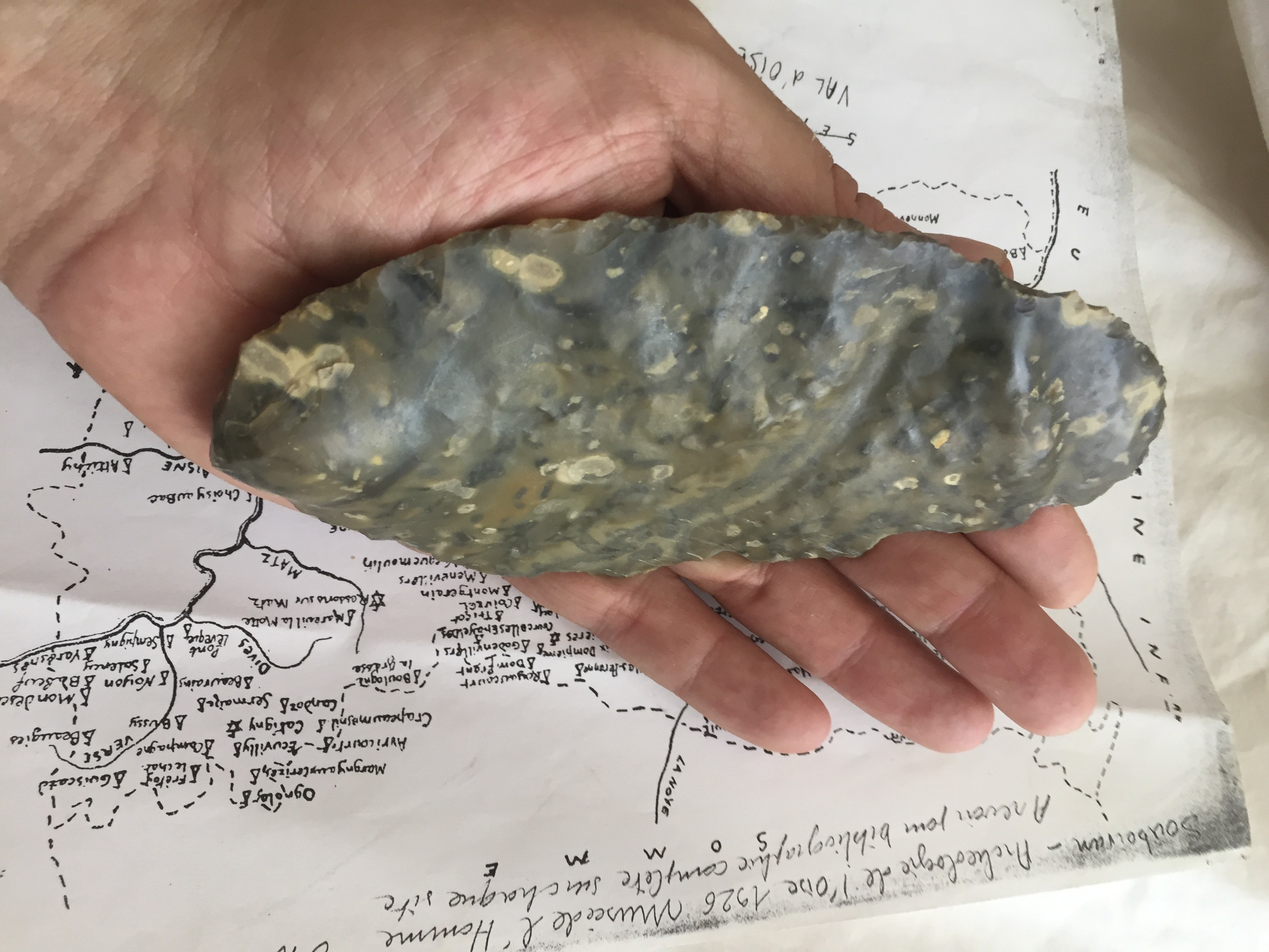 C’est de l’alluvionnaire paléo de l’Oise. Les éléments les plus récents de la base sont datés du magdalénien et sont associés à des objets Acheléen. Il n’y a pas de terrasse ancienne, tout à était mélangé. Pour certaines matières premier, j’ai l’origine la plus probable a quelque centaines de mètres prés (sisi !)