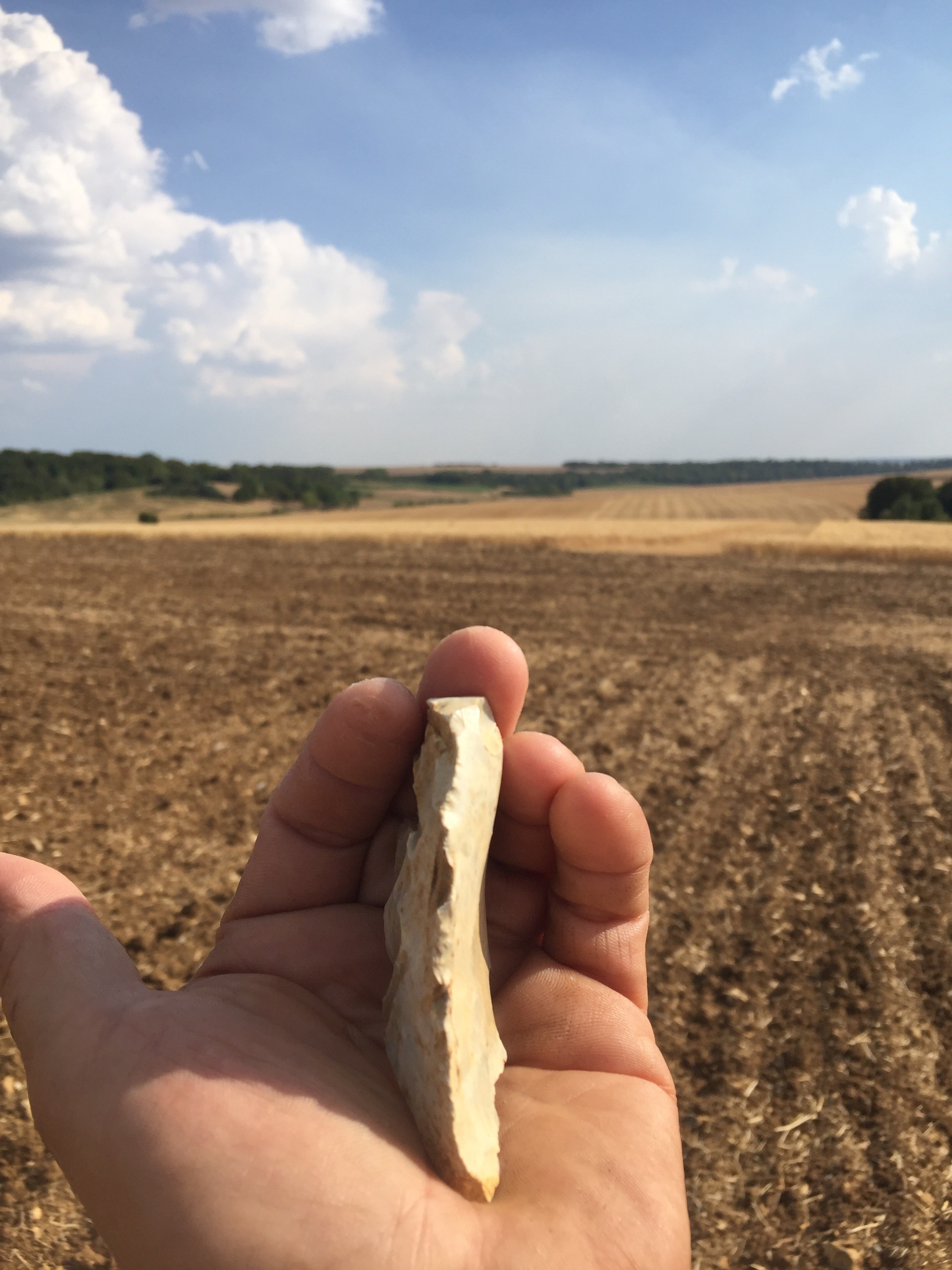 Trouvé en surface dans la plaine de Caen, parmi beaucoup d'autres artefacts.