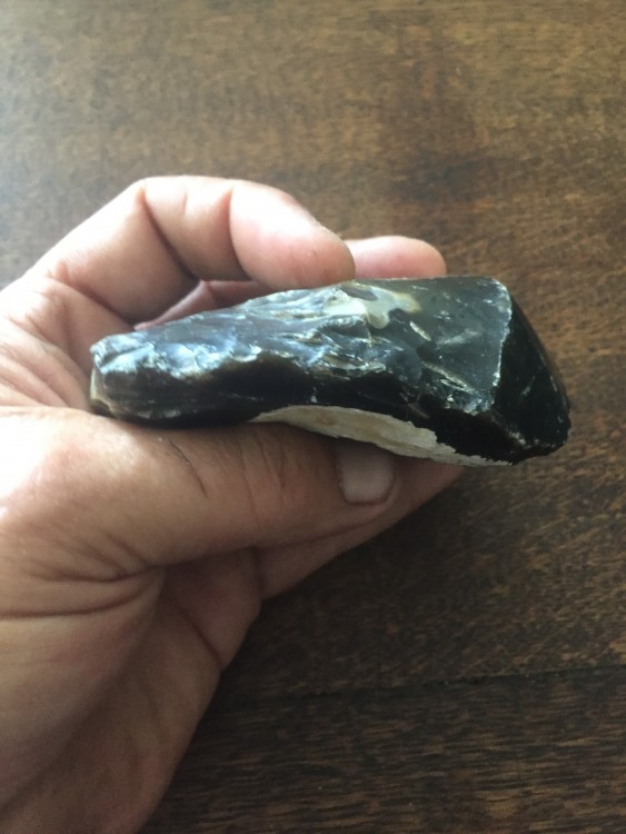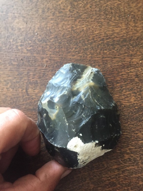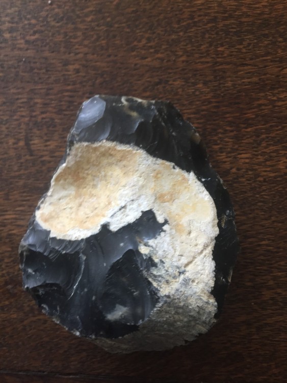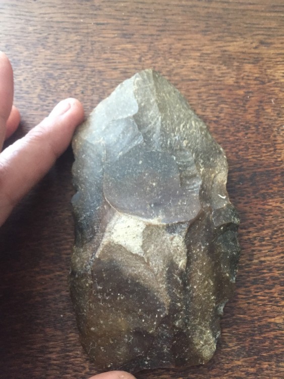Un avis sur ce silex ? Des traces plutôt évidentes de taille sur un côté, l'autre côté paraîtrait presque poli mais on voit l'"onde" de la propagation du choc.