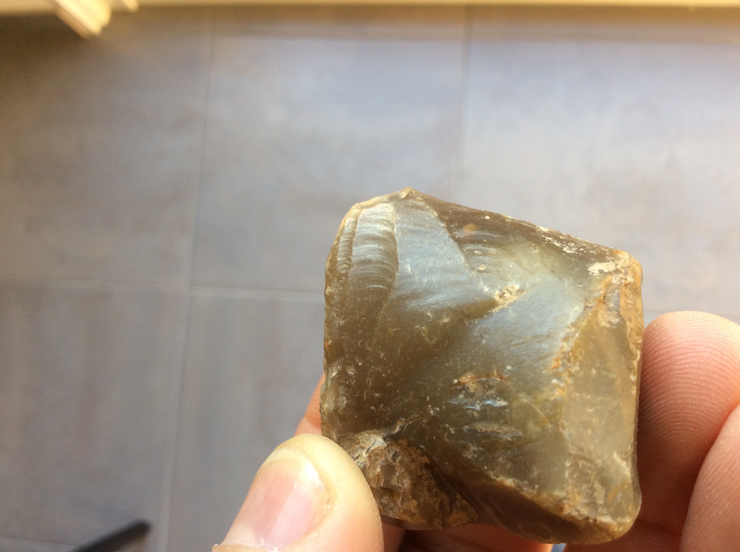 3°: je n'ai trouvé que la moitié de ce silex. On voit nettement la cassure sur la tranche (photo 2)