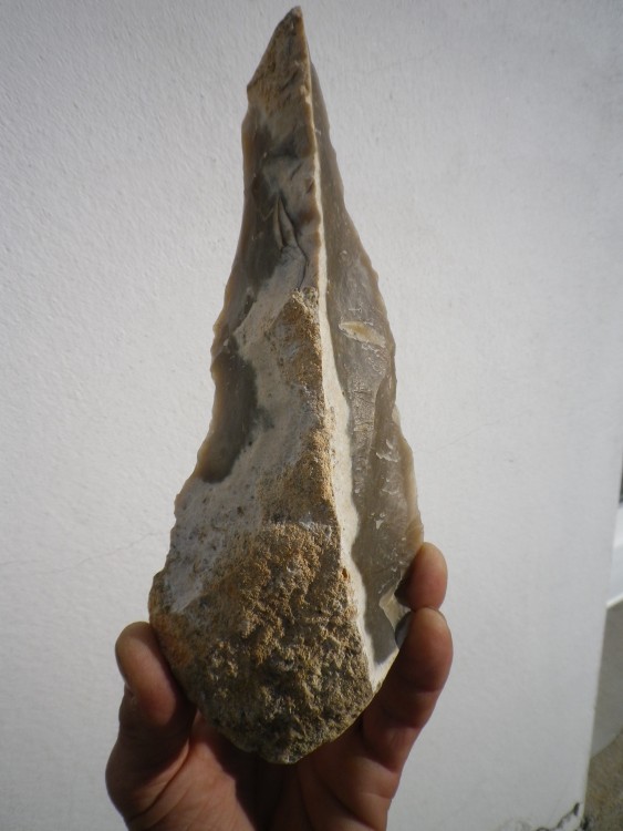 Sinon c'est du travail très frais tout ça ! Pour faire une retouche plus fine ou des plus petits enlèvements (cf. le tranchant) utilisez dans l'idéal un percuteur tendre organique ou tendre en roche (un galet calcaire fait très bien l'affaire)