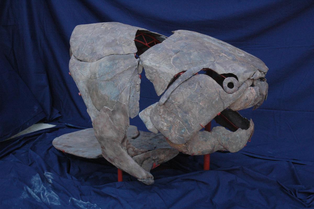 spécimen remonter , chaque plaques anatomiques est libre et peut être étudiée par un spécialiste. on garde l esprit scientifique tout en permettant a chacun de comprendre a quoi ressemblais un dunkleosteus.