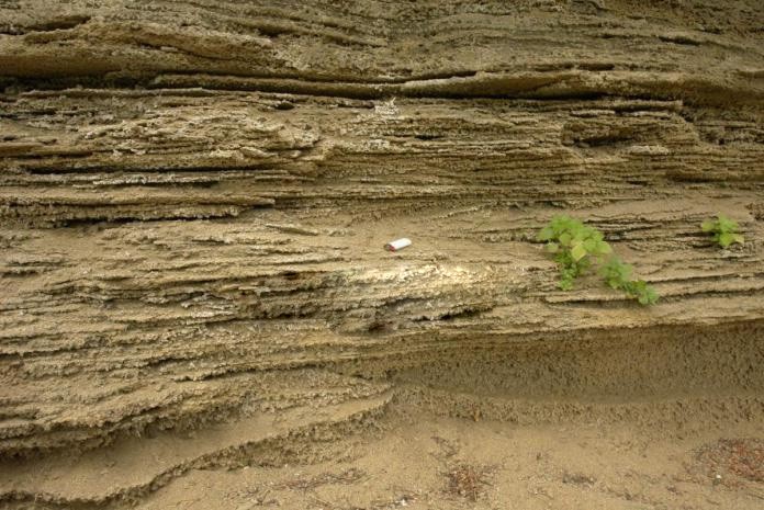 Autre hypothese: un dropstone, cailloux qui serait tombé ou autre chose qui aurait deformé le sediment (il faudrait fouiller au centre),