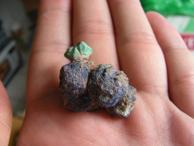 Et aussi une petite azurite de Chessy et quelques petites cuprites de la même provenance…
