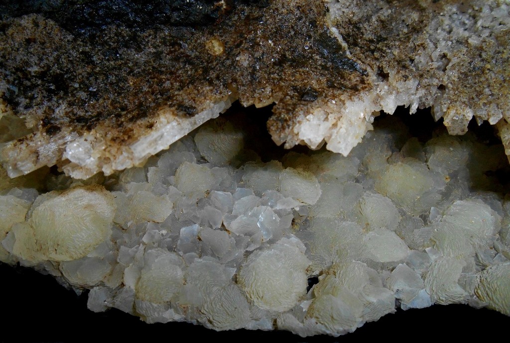Il faut zoomer à fond pour voir le coeur de ces "fleurs" et quelques pétales de quartz restés autour: