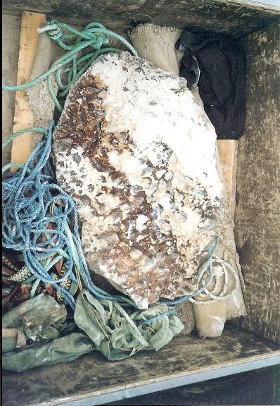Bonsoir, je vient de trouver un filon de Barium (Lozere) avec en surface de tres jolis cristaux. cette piece (40cm / 42kgs)