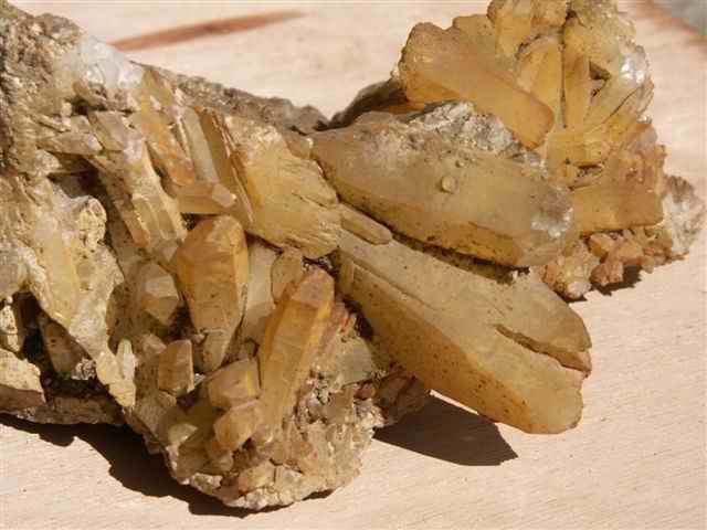 Les cristaux sont recouverts d'une fine couche orangée d'oxydes et hydroxydes de fer je pense, que j'aimerai enlever pour faire ressortir un peu mieux les cristaux que je trouve bien mimi ^^