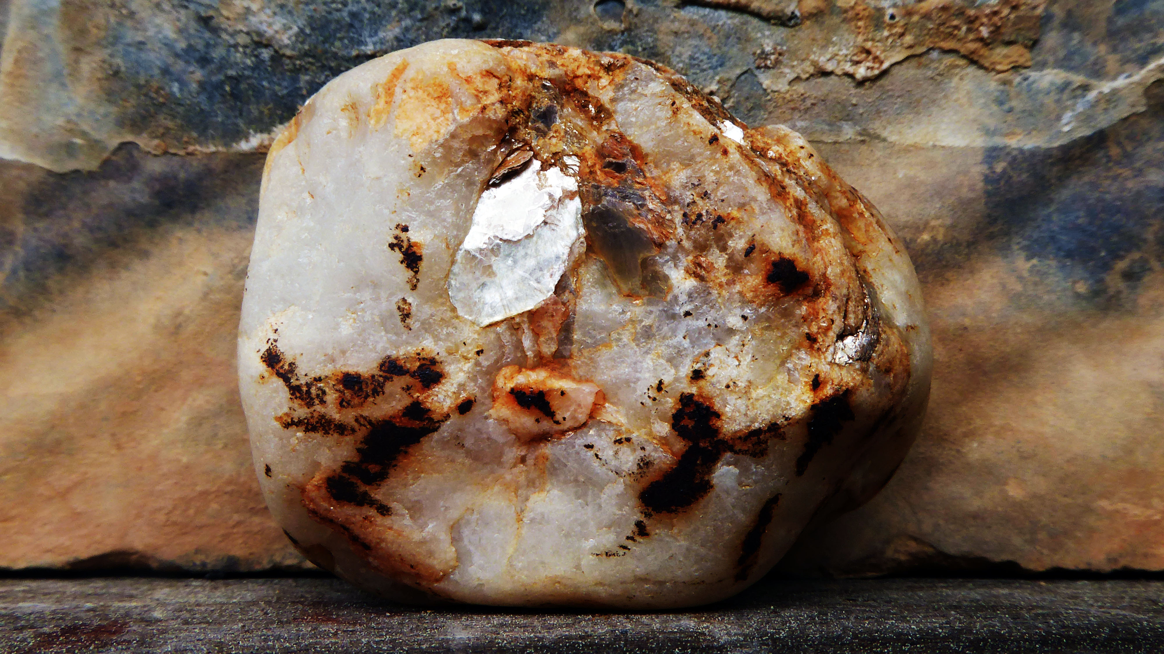 Un galet de quartz présentant des "veines" ferrugineuses "plissées"...11/7/5 cm