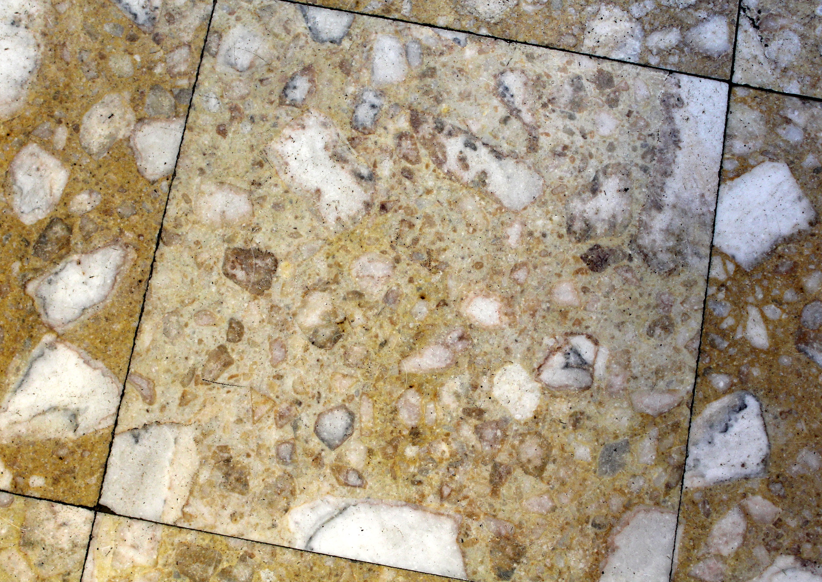 Ai comparé ce galet ( ne raye pas le verre , ne réagit pas au vinaigre ) isolé et diffèrent parmi d'autres pierres elles du même type , avec ce dallage d'une salle d'attente de midi- pyrénés . Peut-être  la même roche ? .