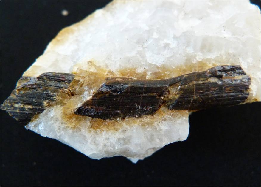 Pour la petite histoire, c'est grace à ces rutiles limousins envoyés par Cordier à Hauy en 1796 que Vauquelin put à la suite de Klaporth isolé l'oxyde de titane. C'est du gisement historique.