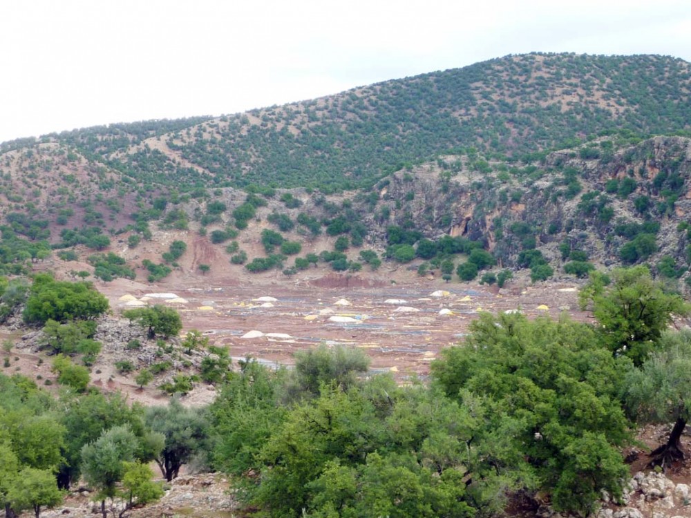 exploitation de sel sur les diapirs (trias, avec dolomies du lias) dans le secteur du Jbel Amsittene (voir situation sur carte géol. en rouge, entre Essaouira et Tamanar) CLIQUER pour mieux voir.