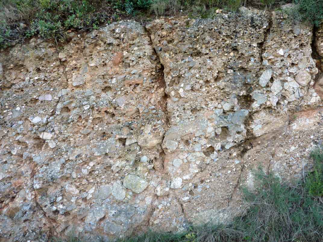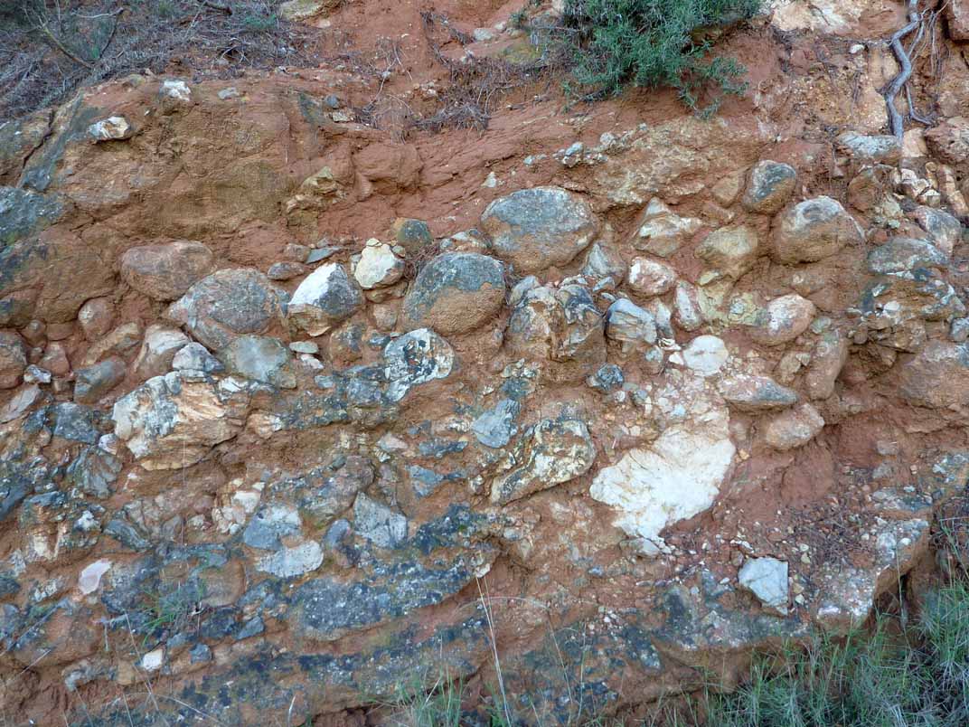 En bord de route... formations rouges conglomératiques du Bartonien inférieur.