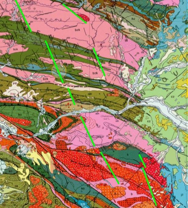en effet en plus de directions de failles majeures "armoricaines", 2 autres familles de failles :