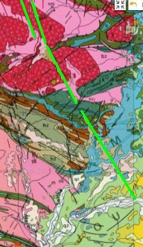 La faille majeure - sans doute régionale - est le plan vertical matérialisé sur l'image par une couleur brun - rouge.
