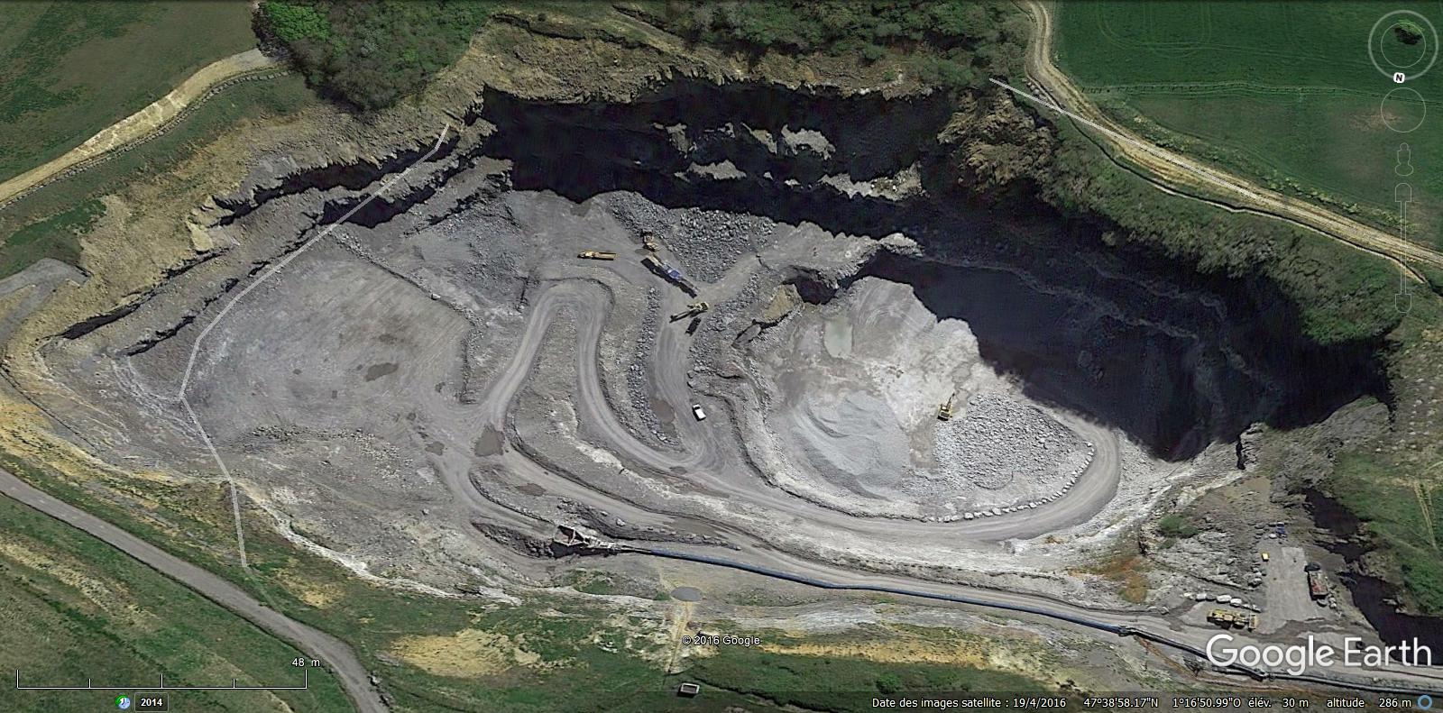 Cela n'empèche qu'il y très probablement un faille majeure dans ce secteur qui découpe la carrière en secteur très différents si on en juge par la vue générale de la carrière.