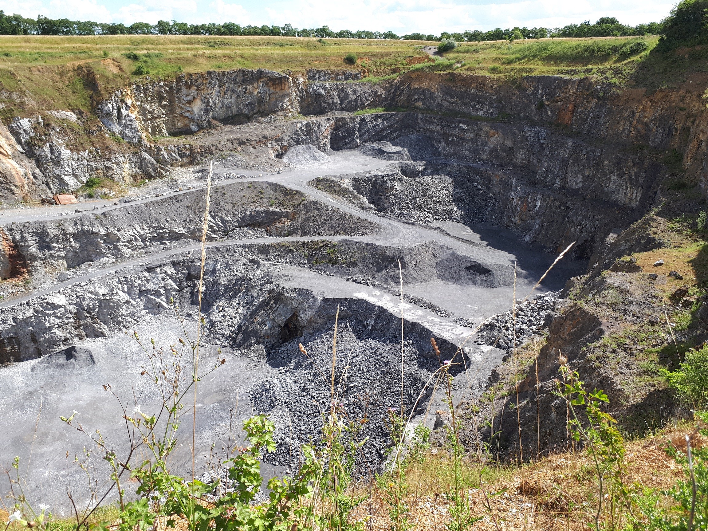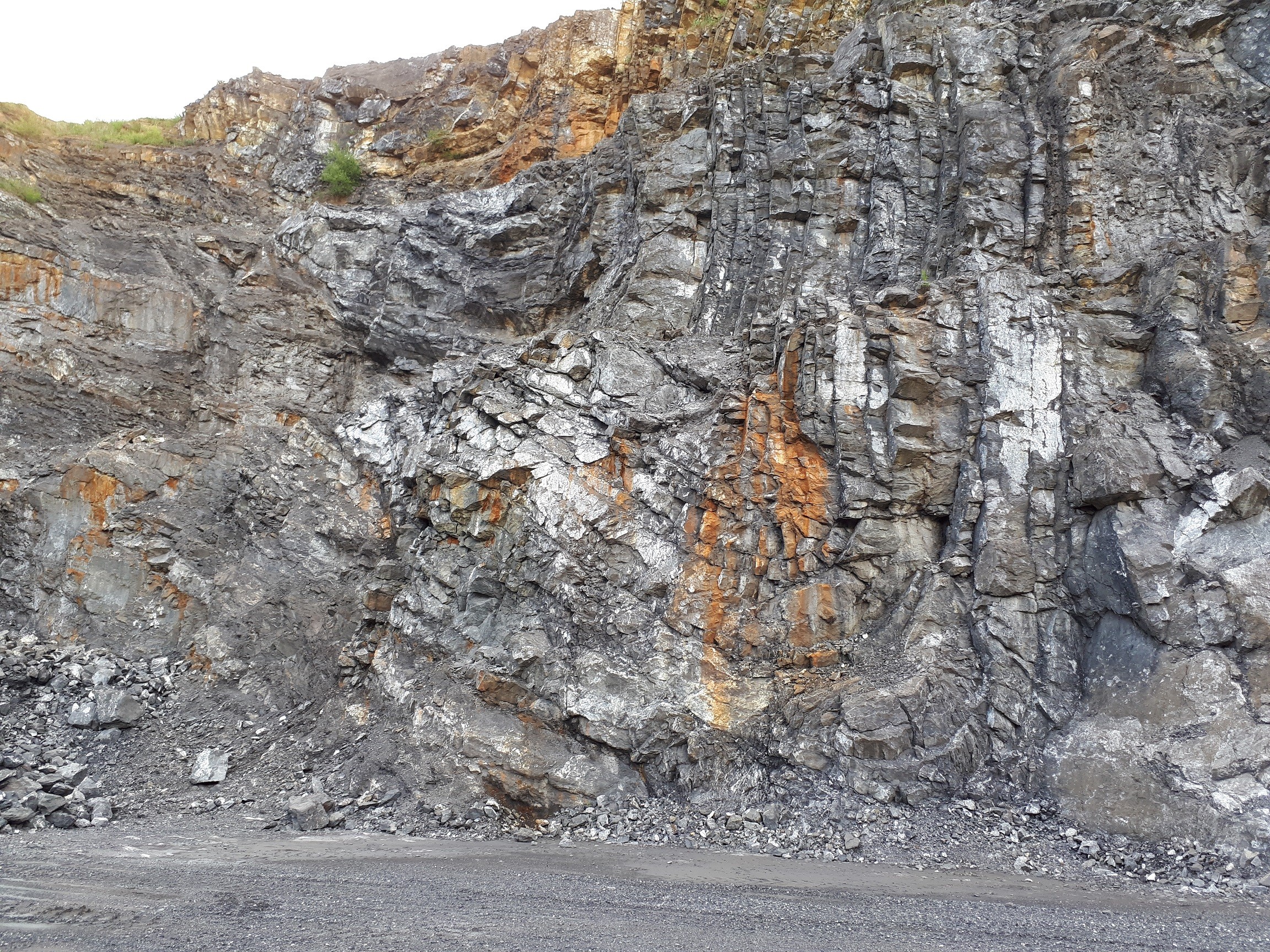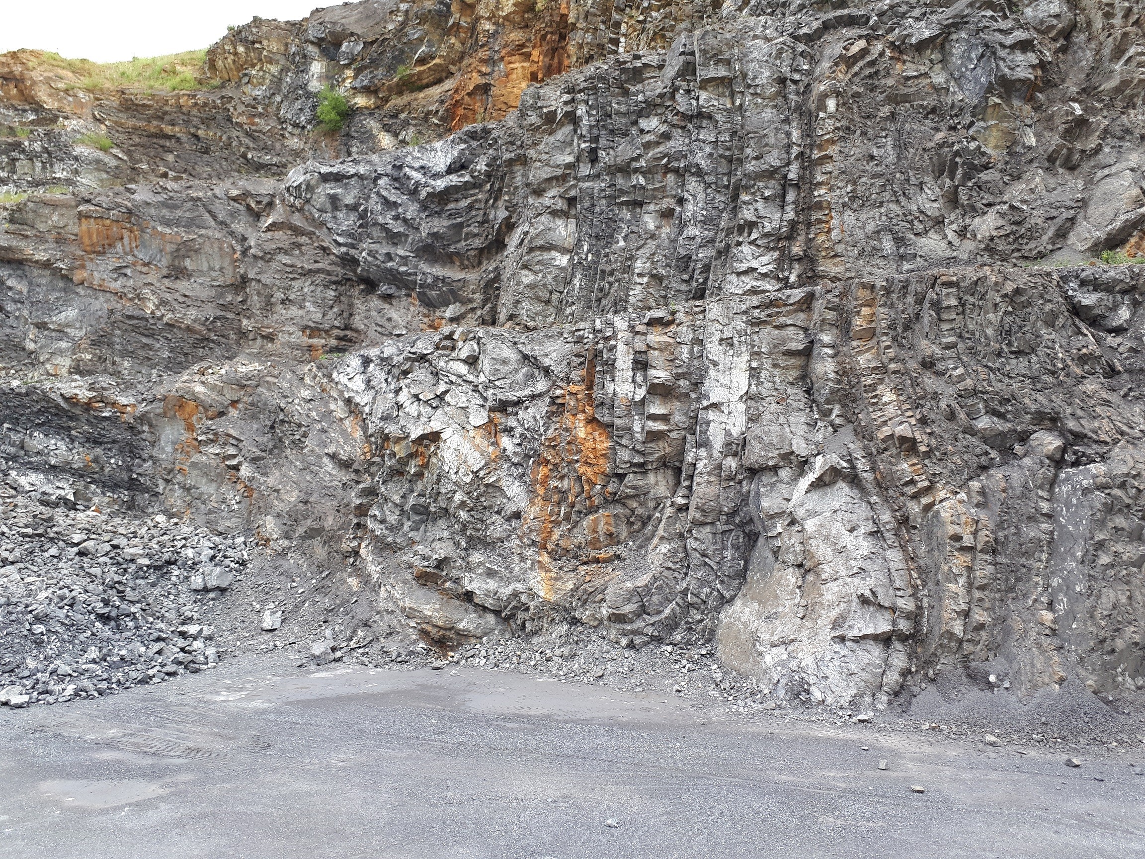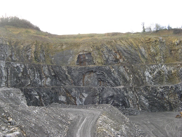 Photo des différentes strates sur 3 niveaux d'exploitation de la carrière .