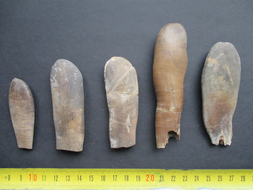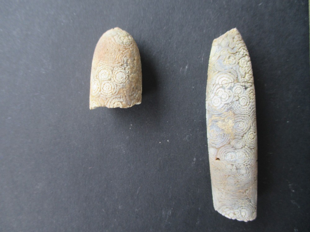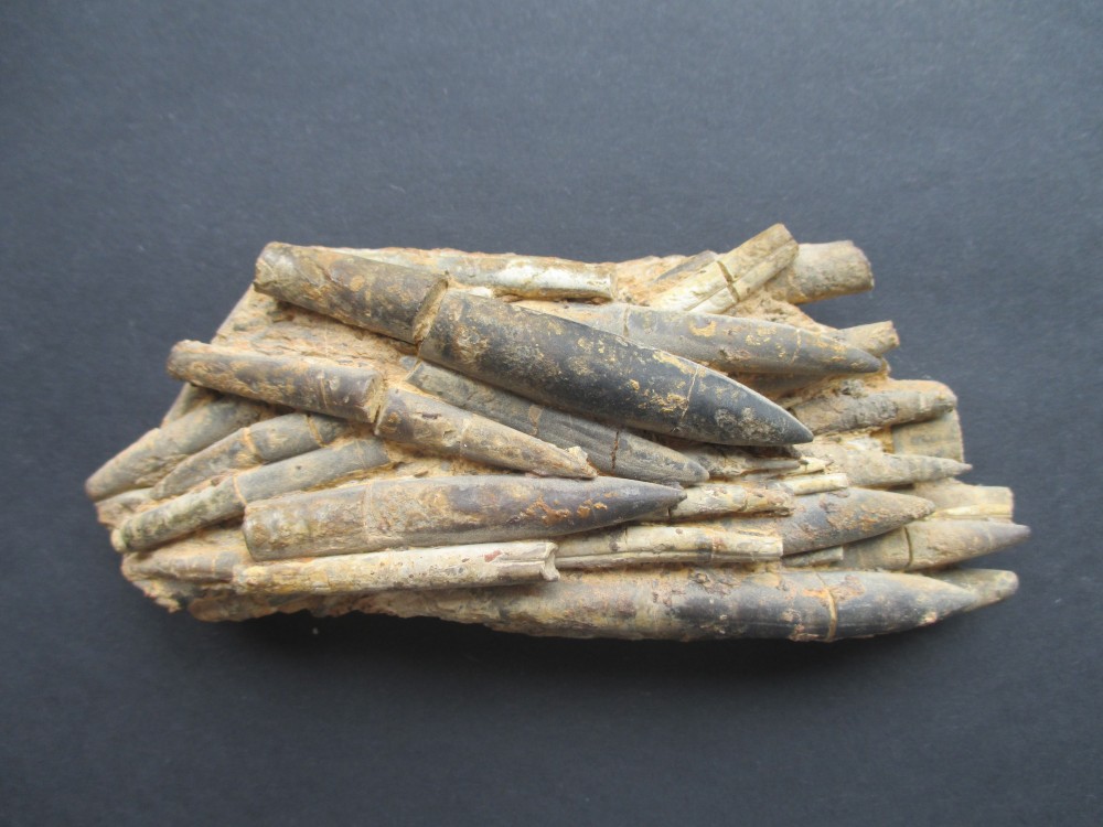 Voici des exemplaires au phragmocône bien conservé. A cause de la proportion relativement importante de celui-ci par rapport au rostre, je pensais qu'il s'agissait de formes juvéniles, mais pas sûre... Autre questionnement (merci pour ce topic dédié aux bélemnites !): comment expliquer la relative abondance de phragmocônes isolés, complets ou non, dans ces marnes noires du Toarcien moyen ?