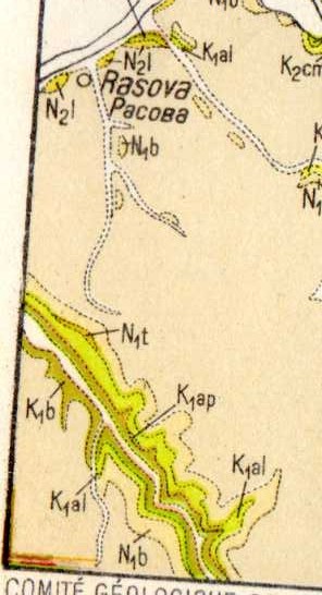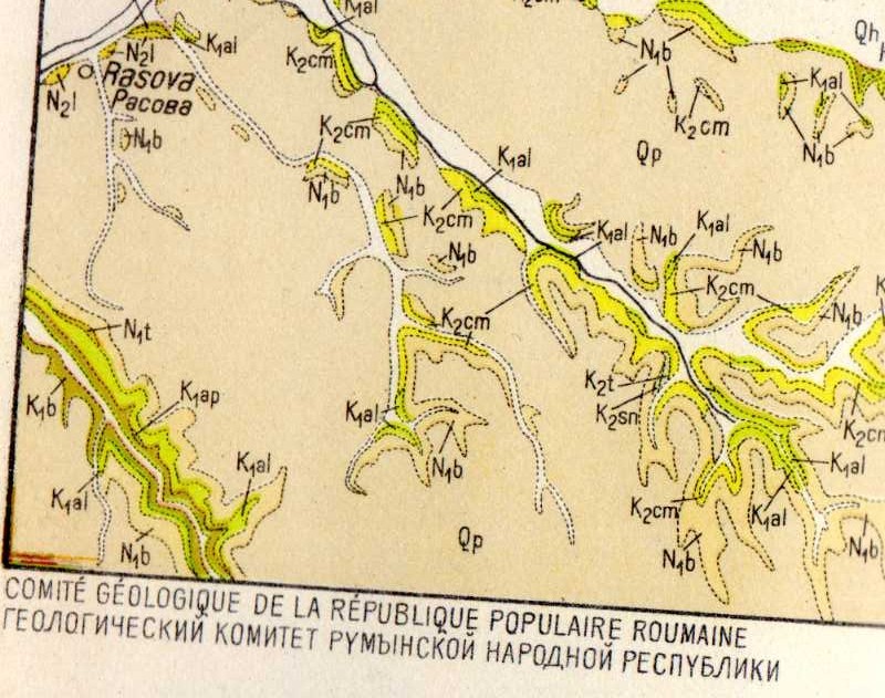 Bonjour, voilà un extrait de carte géologique du Sud Dobroudgea mais je crains fort que ce soit un peu trop au nord de la zone que tu as visitée, cependant il semble bien qu'il y ait le même type de vallée en bas à gauche. Je suis allé voir sur google earth, j'aimerais savoir si tes photos notamment celle avec une église au fond correspondent avec la zone sur la route 991A juste à la sortie de Sipote deuxième virage, bien avant le village de Vàleni , coordonnées 44°02'25 58"N & 27°56'35 56"E.
