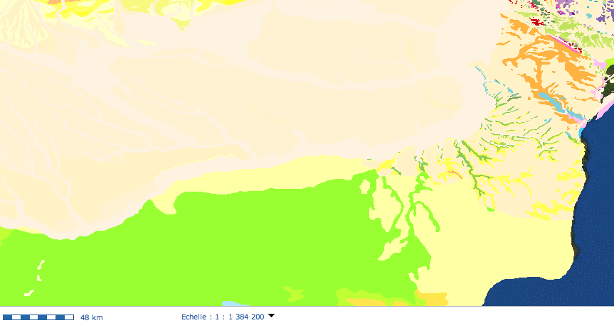 Elle ne revient pas ensuite; va donc démarrer l'action de l'érosion qui commence après 5,332 Ma jusqu'à aujourd'hui; c'est ce que je lis et interp^rète à partir de la carte géologique et d'une coupe faite dans cette vallée en bas à gauche de la carte. Comme quoi on peut lire dans les roches et dans les cartes géologiques véritables livres d'histoire chronologique. Ici c'était très simple.