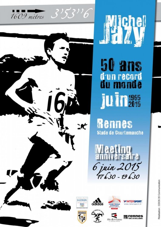 Le 6 juin, nous (Comité d'Athlétisme d'Ille et Vilaine) organisons les 50 ans du record du monde du Mile (1609,32 m) que Michel Jazy a battu sur la piste de Courtemanche à Rennes.